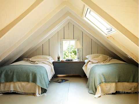 The head of a platform bed can be small twin beds fit snugly against the angular nook of sloped ceilings that reach to the floor, creating a cozy feel in loft and attic bedrooms.